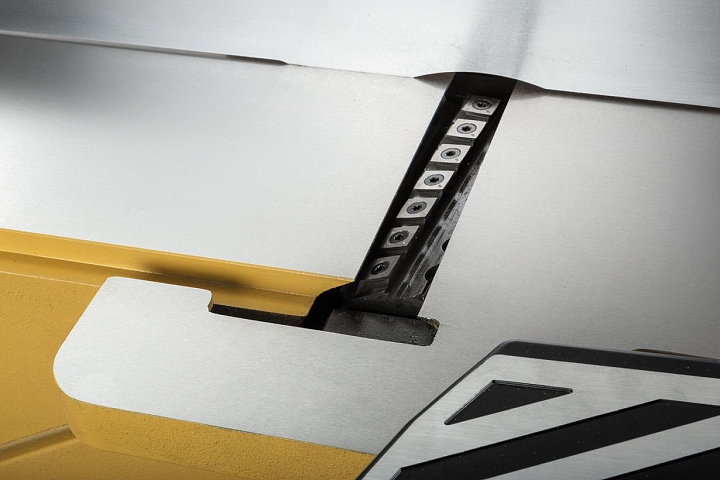 Powermatic 54 A HH – это долговечный и надежный фуговальный станок с длинными столами из чугуна, штатно оборудованный ножевым валом helical. Он имеет 42 твердосплавных режущих сегмента, расположенных в 6 спиральных рядов. Их положение фиксировано, при замене или перевороте (у каждого сегмента 4 рабочих кромки) никаких регулировок не требуется. Преимущества такого строгального вала особенно хорошо проявляются при работе с сучковатой древесиной, с твердыми породами, да и просто при больших объемах. Качество обработки также повышается.